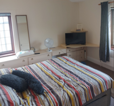 There is a Tv in the room to watch dvd’s On, wardrobe and Chester drawer in room
